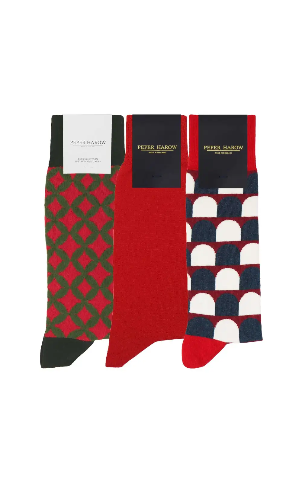 Enhance your style with the Men's Red Bundle, featuring the Mosaic, Classic, and Ouse designs. These luxury men's socks offer unparalleled comfort, breathability, and durability. Perfect for adding a bold yet refined touch to both formal and casual outfits.