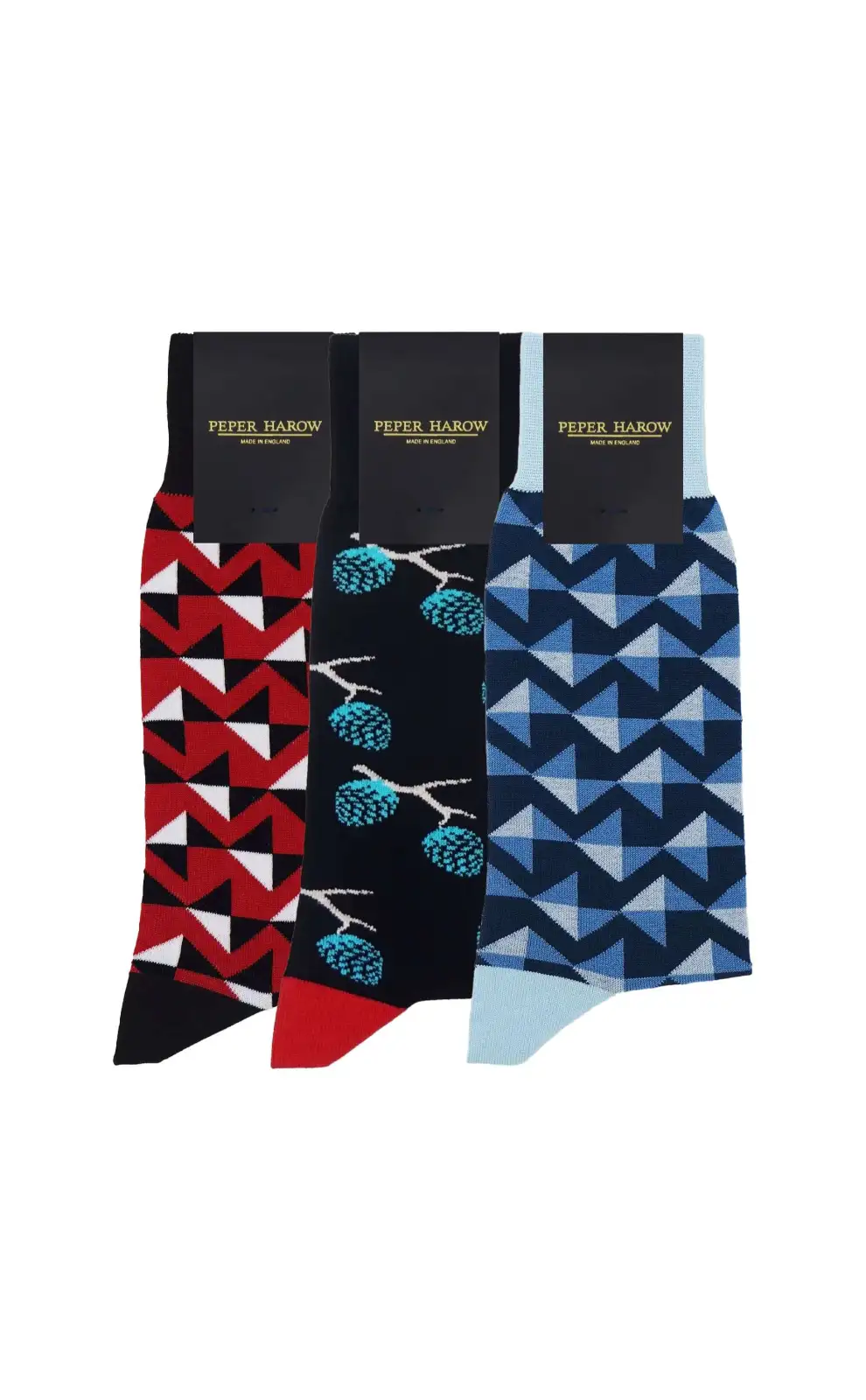 The Royalty men's luxury socks bundle offers three pairs of stylish and comfortable socks, combining bold geometric patterns with timeless colours like navy and black. These socks are durable and soft, making them ideal for everyday wear. Whether you're dressing up or down, this bundle ensures a sleek, modern look with a sophisticated edge. A versatile addition to your sock drawer.