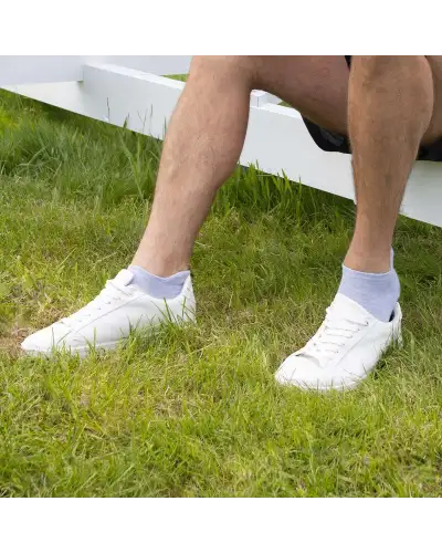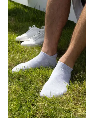Add a new level of comfort to your fitness repertoire with the plain grey Organic men's trainer sport socks. These grey organic cotton sport socks come with a blister tab, a cushioned sole, and ribbed arch bands that provide unmatched comfort and support for an ultra-comfortable fit.
