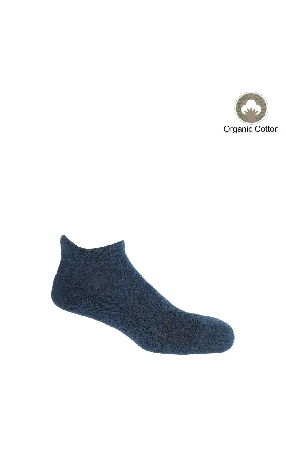 Add a new level of comfort to your fitness repertoire with the plain navy Organic men's trainer sport socks. These navy organic cotton sport socks come with a blister tab, a cushioned sole, and ribbed arch bands that provide unmatched comfort and support for an ultra-comfortable fit.