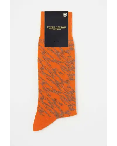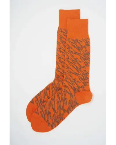 Cause an uproar with your dashing outfit accentuated perfectly by the Pandemonium orange organic cotton men's socks. These patterned socks feature a fierce brown pattern highlighted by the deep orange, giving you the boost of confidence you need, from the ground up.
