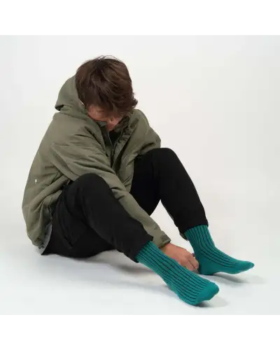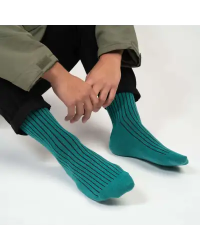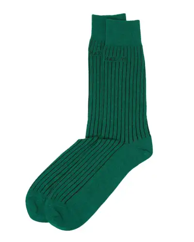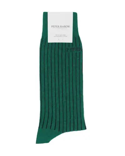 Introducing the newest in eco-friendly fashion from Peper Harow - the men's green Recycled Ribbed cotton socks. Made from recycled cotton and polyester, these green striped sustainable socks are an essential addition to the wardrobes of environmentally-conscious gentlemen.