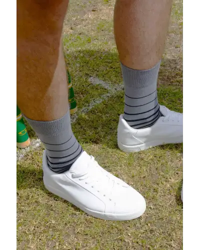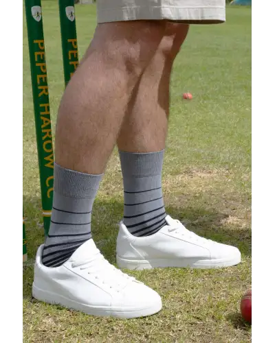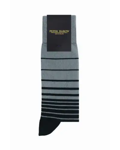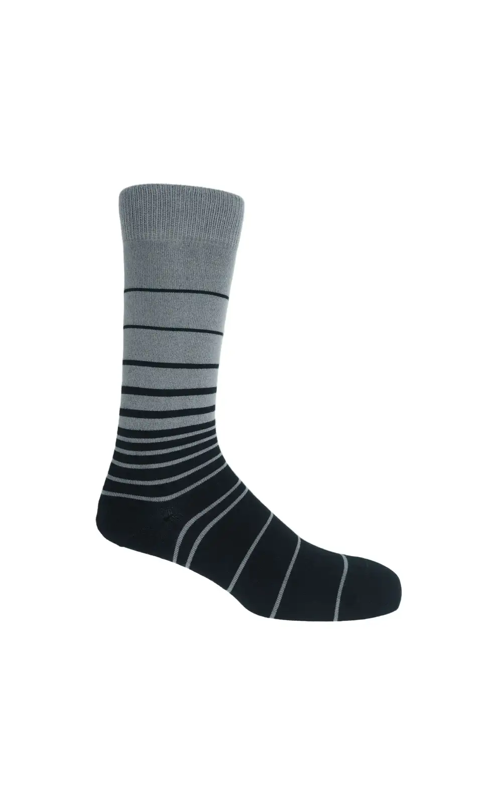 The Retro Stripe in grey is a quintessential addition to new or old outfits. With its grey and black stripes, these striking luxury men's socks are perfect for stylishly attired gentlemen - be it office or home. A throwback to the days when style was uncomplicated.