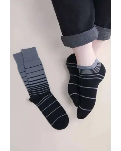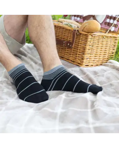 Put your best foot forward with the onyx and grey Retro Stripe men's trainer socks, complete with contemporary stripes that radiate timeless charm. Not only do these fancy socks add a touch of sophistication to your outfit, but they're also a must-have for any fashion-conscious gent out there.