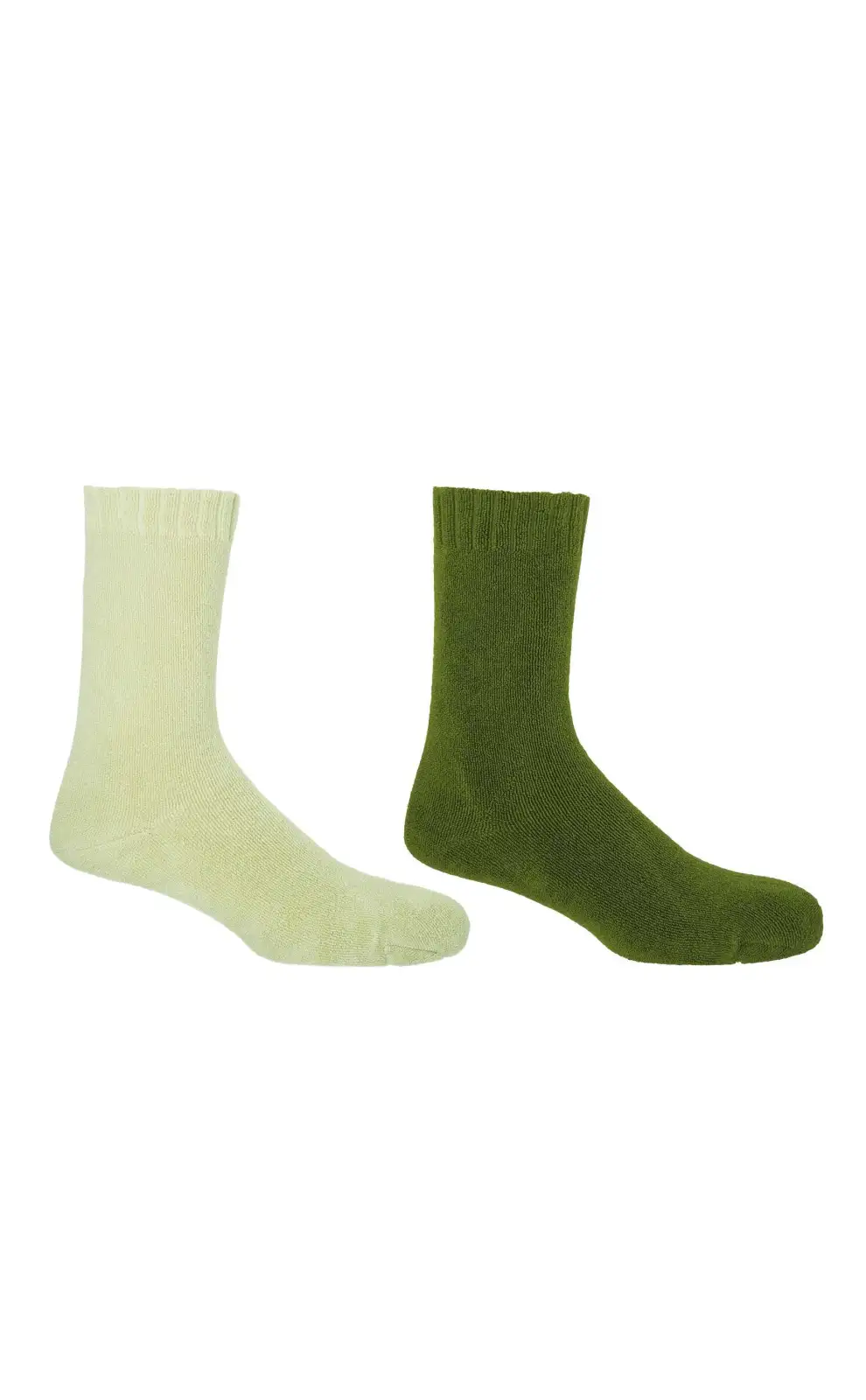 Warm up your winter with the Ribbed Cuff cream & green men's luxury bed socks. These thick socks are fluffy with a ribbed texture and are the embodiment of comfort. Perfect for those with perpetually cold feet or for men who love wearing comfortable loungewear at home.