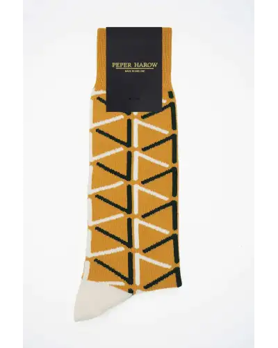 Your outfit is complete with the mustard Septem men's luxury socks, no matter the occasion. With the contrasting black and cream patterns across these stylish men's mustard socks, they are a perfect addition to any gentlemen's wardrobe.