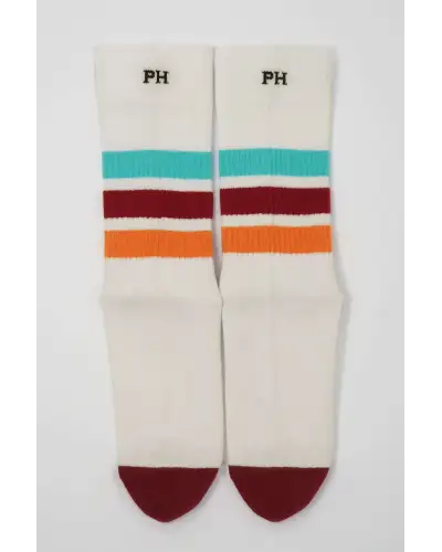 Striped Organic Mens Sport Socks - White-PH-6125348847790-