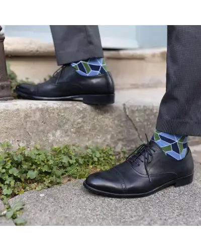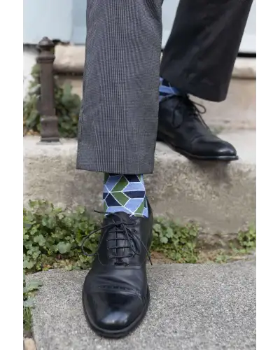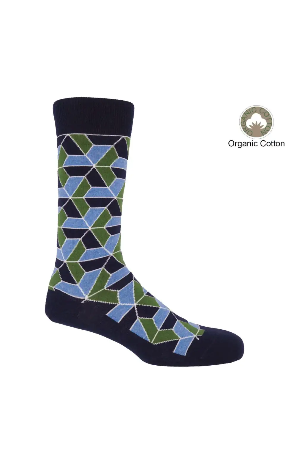 The Vertex men's navy socks boast a hexagonal design combining shades of blue, green and navy for an eye-catching aesthetic. Enjoy the luxury of superior quality and a unique design with these sophisticated navy socks for men.