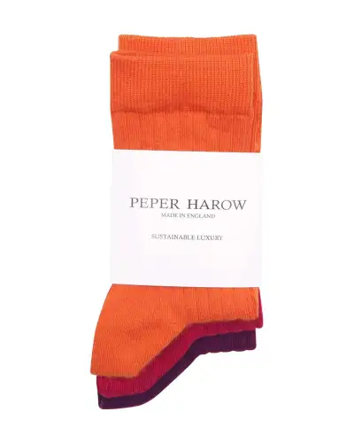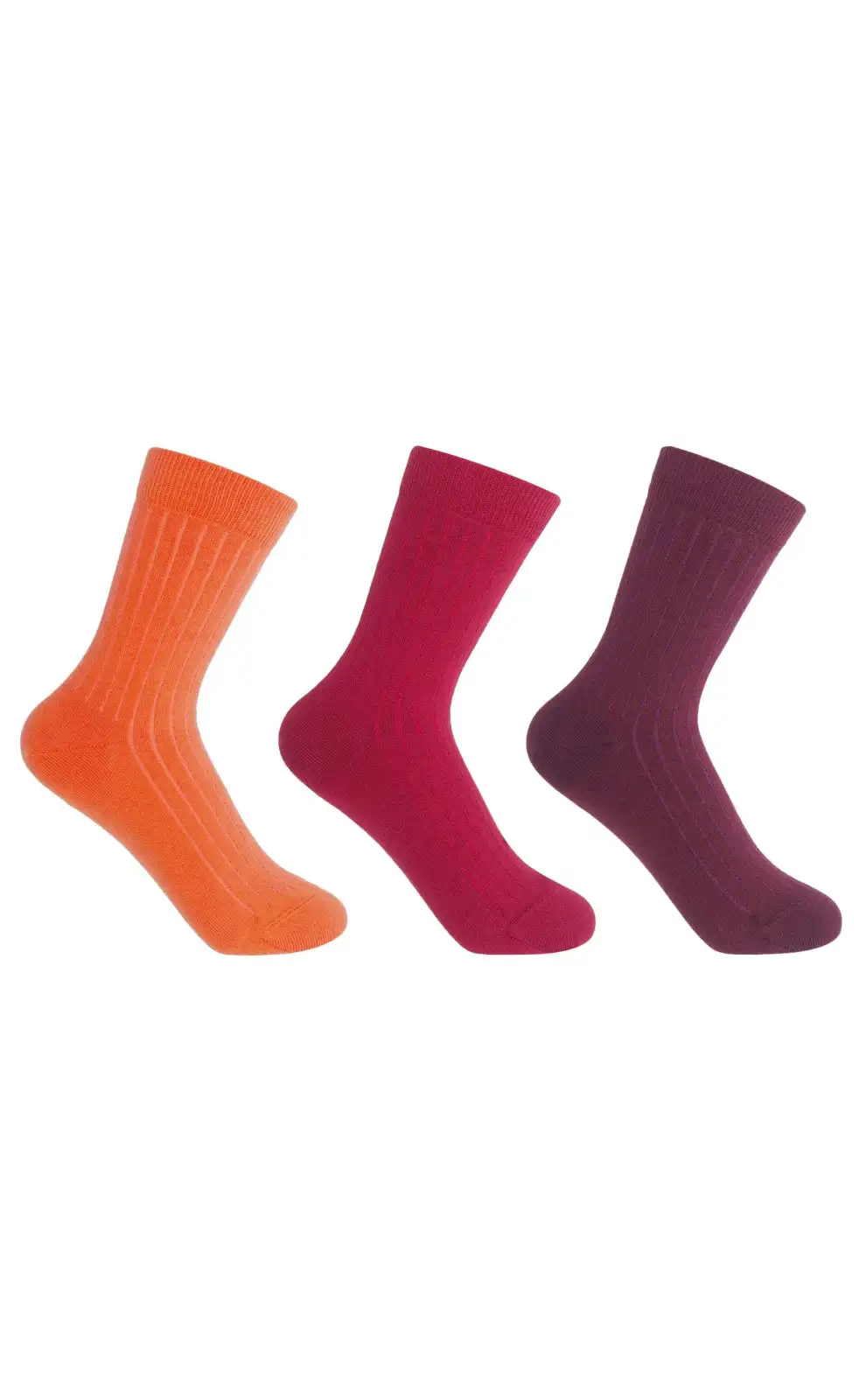 Treat yourself to the ultimate comfort and chic with our women's luxury Sunset 3-Pack Essential ribbed socks. This set of sumptuously soft socks is offered in three vibrant colours - orange, red, and maroon - infusing a touch of vivid grace into your everyday outfits and adding a refined flair to your look.
