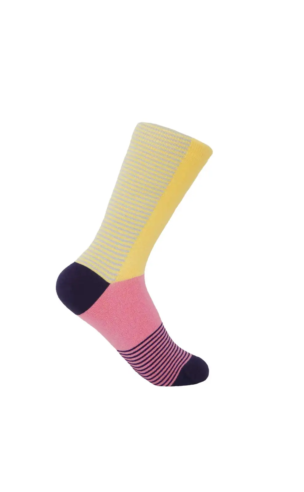 Introducing the elegant daisy Anne socks for women. These magnificent ladies socks epitomise comfort and luxury, with their contrasting navy heel and toe and grey stripes. The perfect socks to match any outfit combination, while still maintaining style.