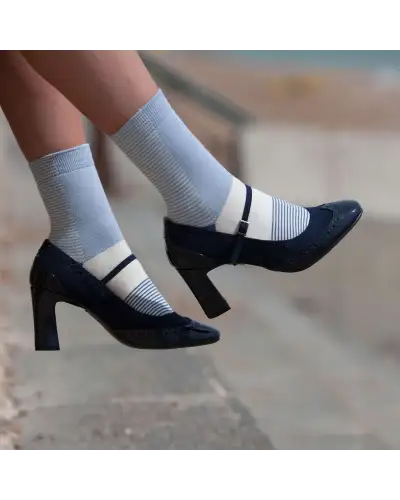 Introducing the soft jasmine Anne socks for women, colour-ways in partnership with The English Soap Company. These sumptuous ladies socks epitomise comfort and luxury, with their contrasting heel and toe and cream stripes. The perfect socks to match any outfit combination, while still maintaining style.