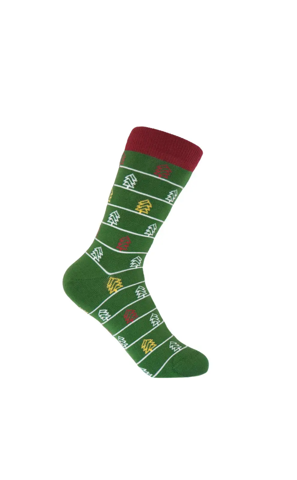 Adding a touch of the contemporary to the traditional Christmas tree, these luxury green socks are a cute addition to any Christmas outfit and beyond. With its red, yellow and white Christmas Trees, these women's patterned socks add the extra to a very ordinary outfit.