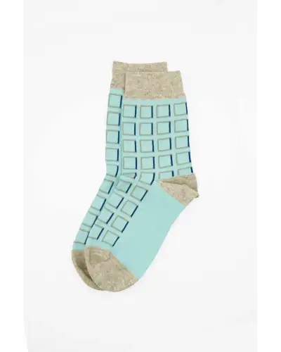 Introducing our Cube women's socks, featuring a luxurious cube design in cool blue, accented with a striking dark blue line. Made from recycled cotton, these sustainable socks are both stylish and eco-friendly. Enhance your wardrobe with these sophisticated socks.
