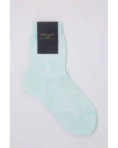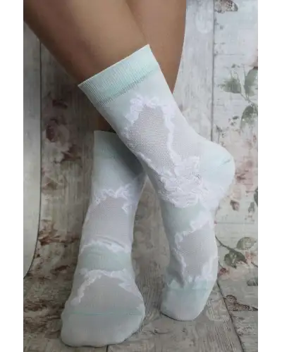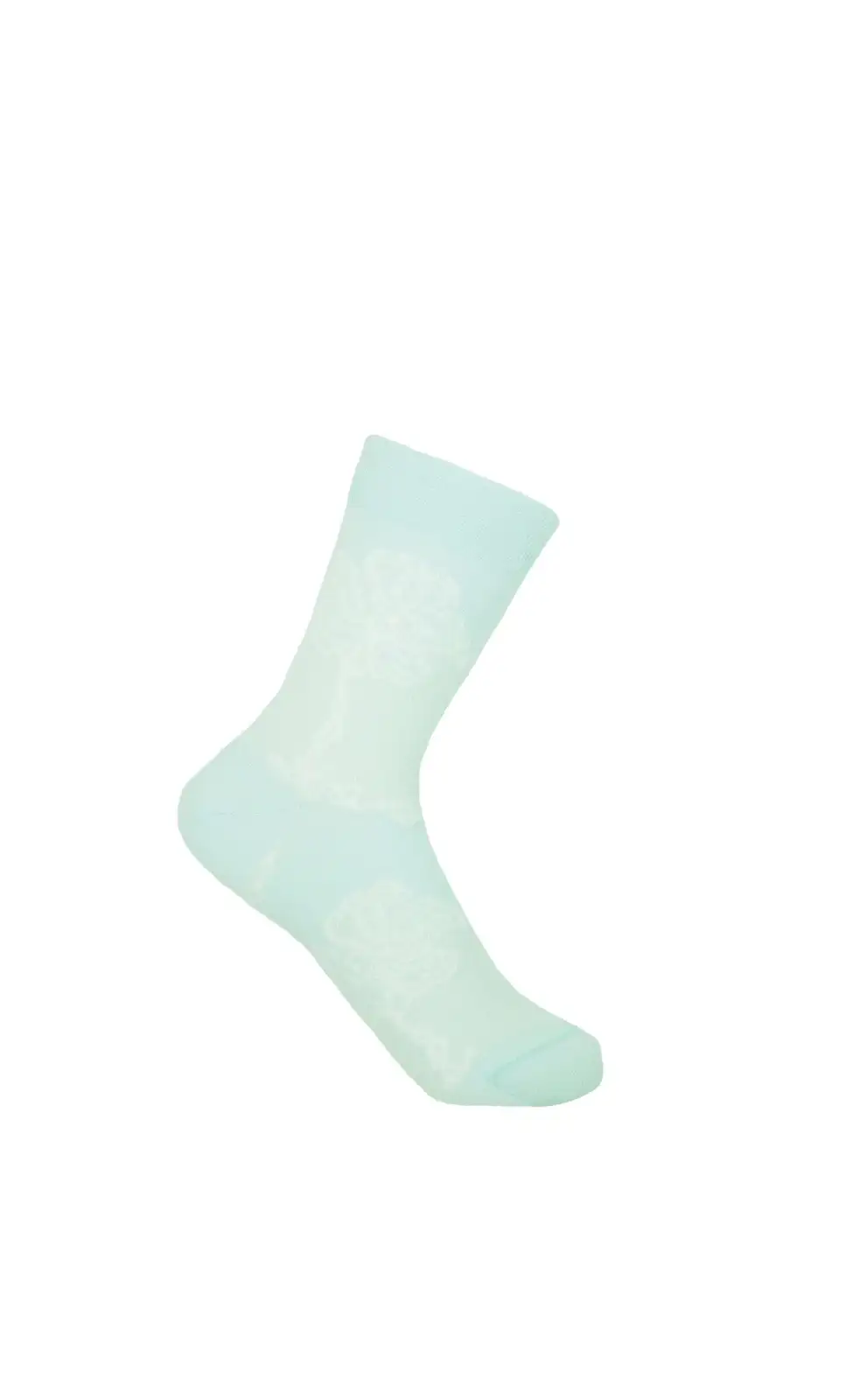 If you're looking for a more subdued touch, then the celeste Delicate women's socks are for you. Featuring a white lace floral pattern on a soft solid celeste background. Perfect for those cute summer outfits or fun nights out.