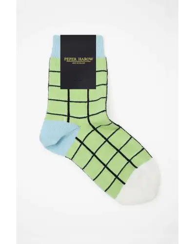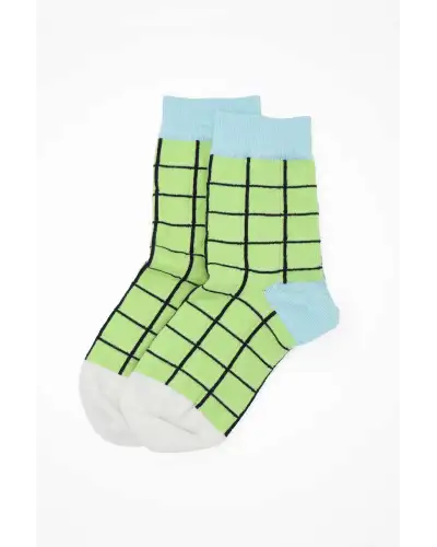 The framework of any sleek outfit starts from the ground up, and with the pastel lime Grid luxury socks for women, you'll have an adamantine foundation of style. Combining the symmetrical grid with spectacular comfort, these ladies' lime green and sky blue socks are ideal in any outfit.