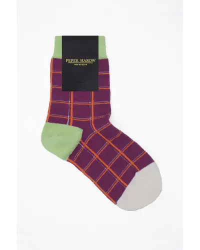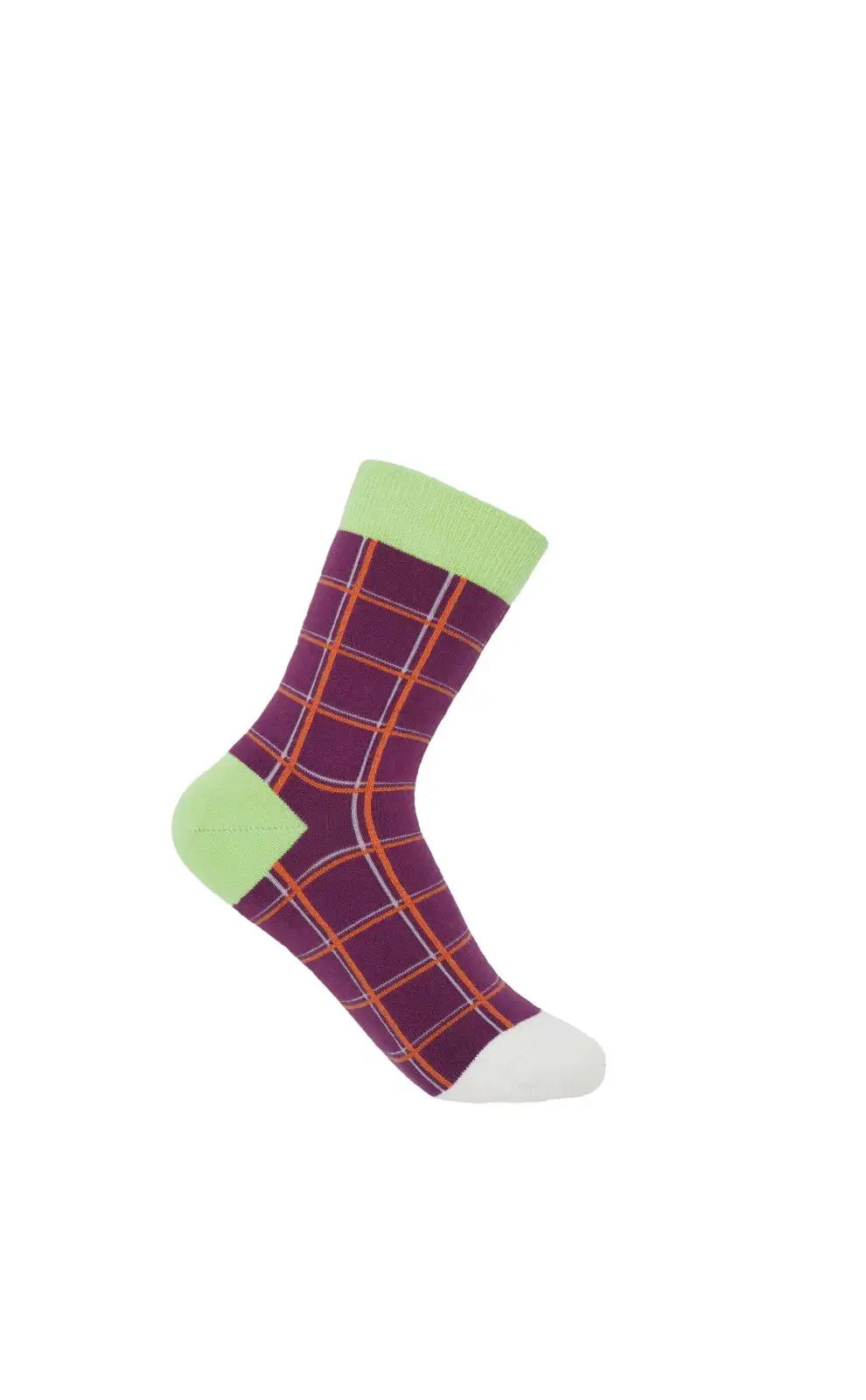 The framework of any sleek outfit starts from the ground up, and with the vibrant purple Grid luxury socks for women, you'll have an adamantine foundation of style. Combining the symmetrical grid with spectacular comfort, these ladies' purple and lime socks are ideal in any outfit.