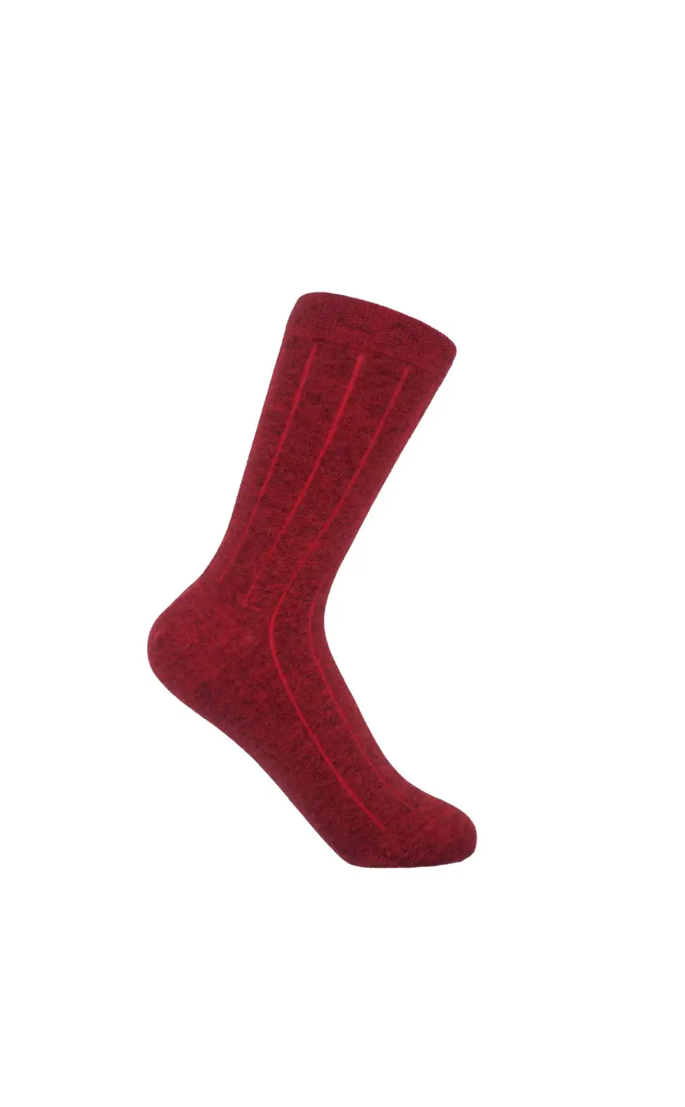 Indulge yourself in opulence with the red Indulgent Cashmere women's luxury socks. Boasting an ethereal red hue, these luxury socks will become your favourite source of comfort. The perfect way to treat yourself to a moment of luxury, these cashmere women's socks are as beautiful as they are comfortable, adding a hint of sophistication to your everyday wardrobe.