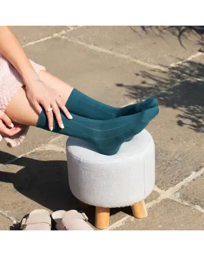 Experience the indulgence of the teal Indulgent Cashmere women's luxury socks. Their captivating hue and sumptuous cashmere blend add a touch of sophistication to any look. Enhance your wardrobe with these luxury socks for a feeling of elegance.