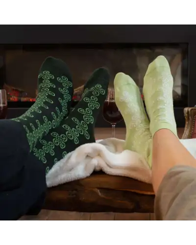The lime Knot women's luxury socks embody elegance and comfort, making them a standout piece for your collection. With a beautifully detailed Celtic knot pattern in cream, these socks offer both style and sophistication. Perfect for pairing with smart outfits, yet versatile enough for everyday wear.