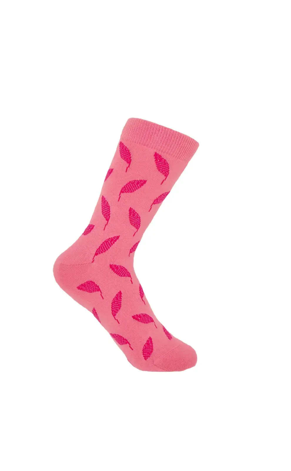 From the dazzling Autumn trees straight onto luxuriously soft cotton socks. Introducing the Leaf socks for women, these warm pink socks are quality and comfort in perfect unison.