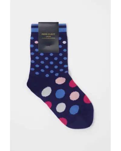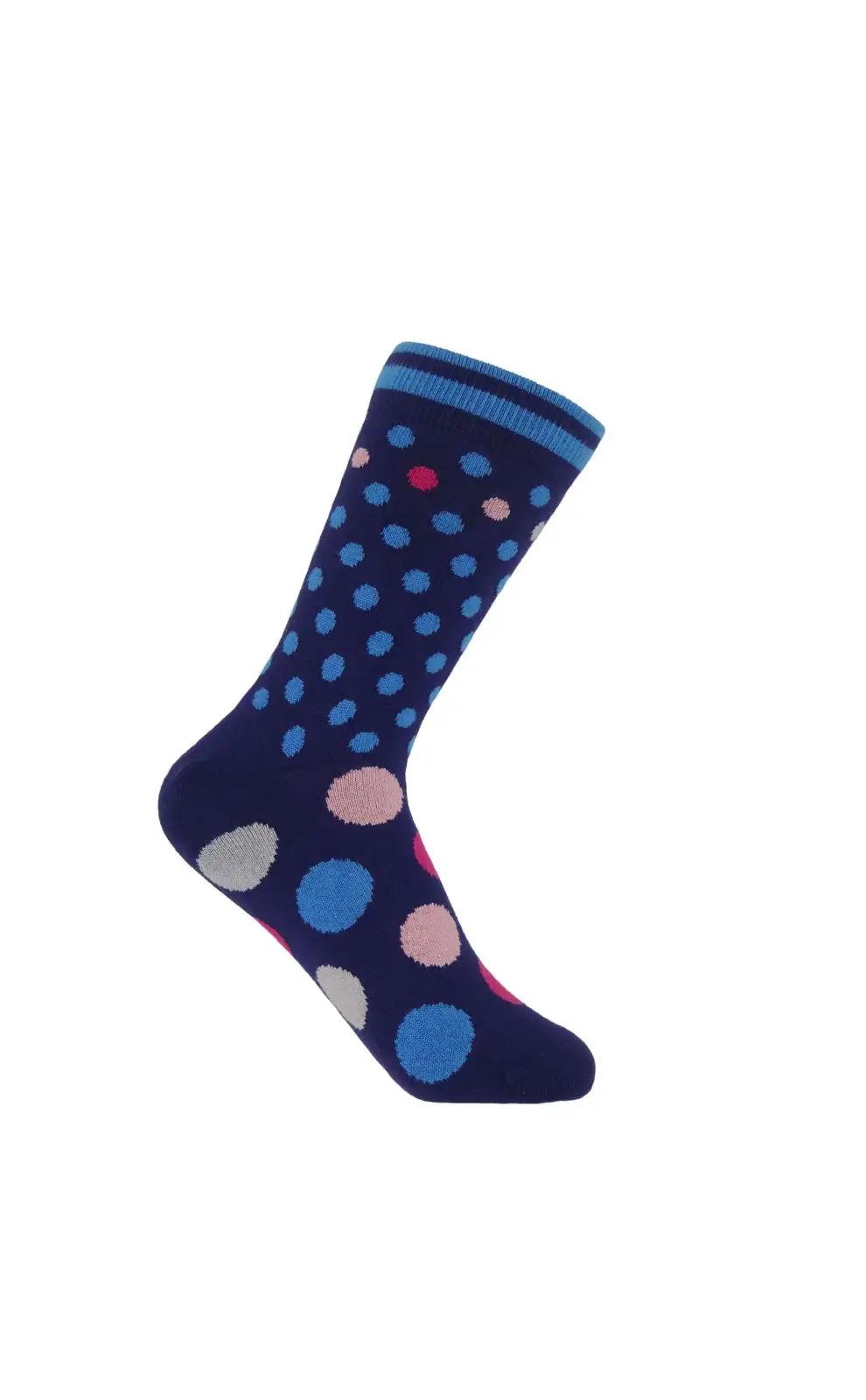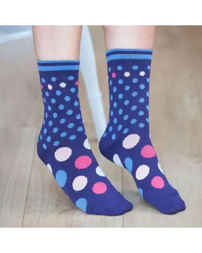 Introducing the lovely navy Mary socks for women. These exhilarating ladies polka dot socks will inspire and impress, with pink, grey, magenta and blue polka dots, they're perfect for everyday wear and the more formal occasions.