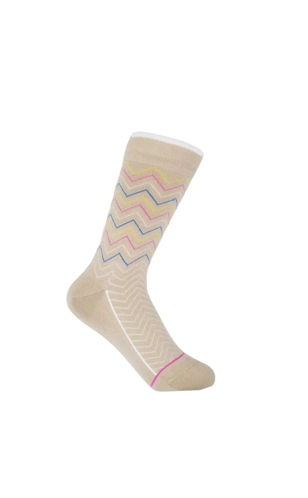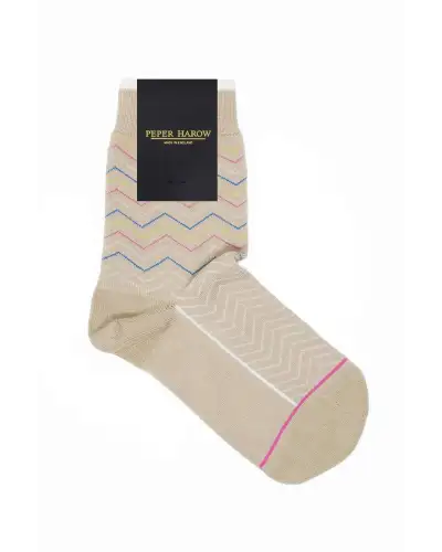 With their classic yet elegant design, the exquisite beige Oblique women's socks are woven in an elegant micro chevron stripe, with unique multicoloured stitching. These luxury beige socks for women are ideal for chic ladies who appreciate British-made style.
