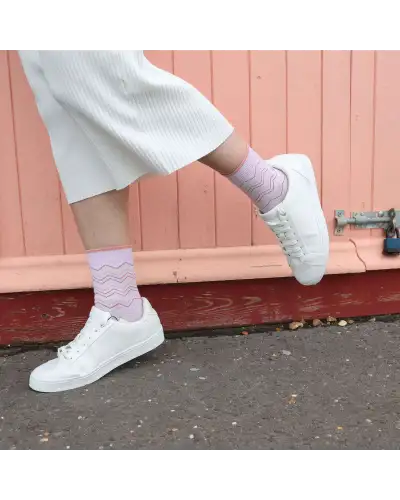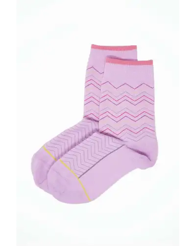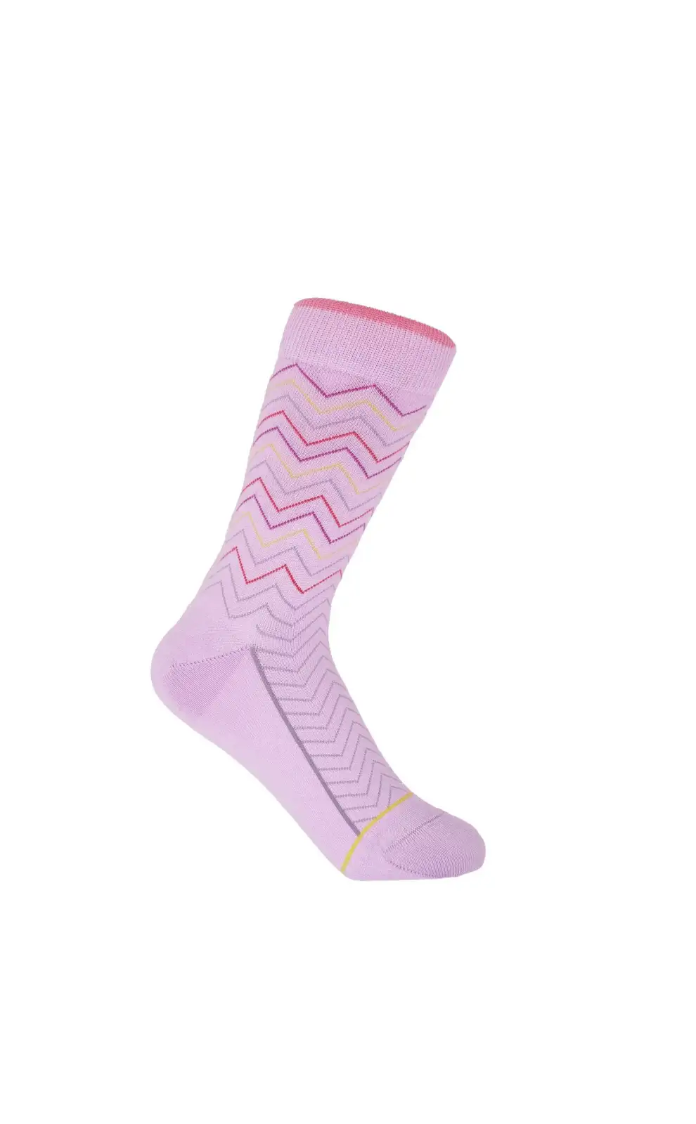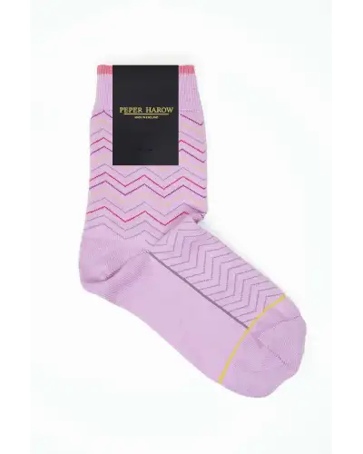 With their classic yet elegant design, the exquisite lilac Oblique women's socks are woven in an elegant micro chevron stripe, with unique multicoloured stitching. These luxury lilac socks for women are ideal for chic ladies who appreciate British-made style.