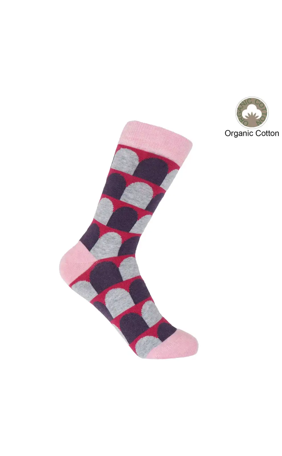 Designed as a nod to the local Ouse Valley Viaduct, the pink Ouse women's luxury socks combines impeccable style with that touch of Peper Harow quirkiness to create a contemporary pair of luxuriously soft and sustainably organic socks for her. With perfectly complementing pink, grey and purple these women's socks are ideal for any outfit.
