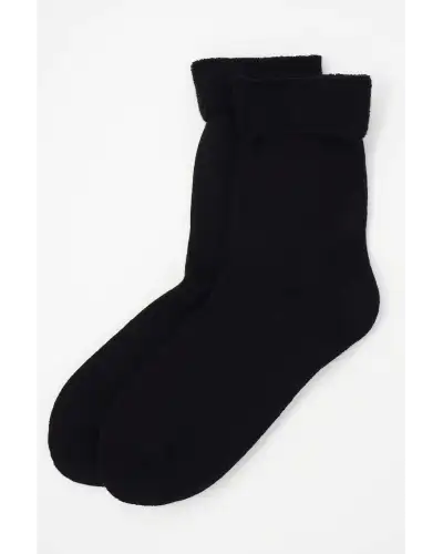 Warm up your outfit with the Plain black women's luxury bed socks. These thick black cotton socks are fluffy on the inside and are the embodiment of comfort. Perfect for those ladies with perpetually cold feet or women who love wearing comfortable loungewear at home.