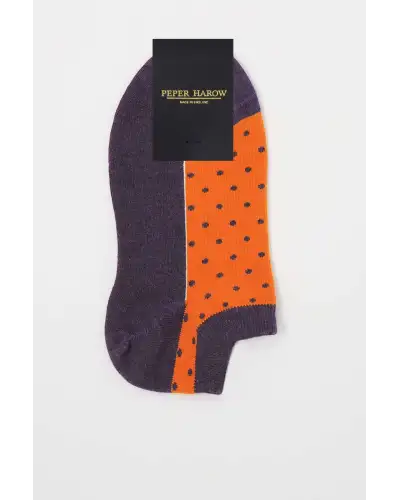 A timeless design made even more sustainable. The vivid berry Polka women's organic trainer socks are a soft, stylish addition to your summer outfit. With their bright orange and berry purple polka dot design, these luxury women's socks offer impeccably made comfort and style.