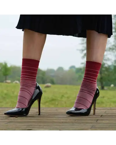 The Retro Stripe in musk is an exquisite addition to new or old outfits. With its contrasting red and musk stripes, these striking luxury women's socks are perfect no matter the outfit - be it formal or casual. A throwback to the days when style was uncomplicated.