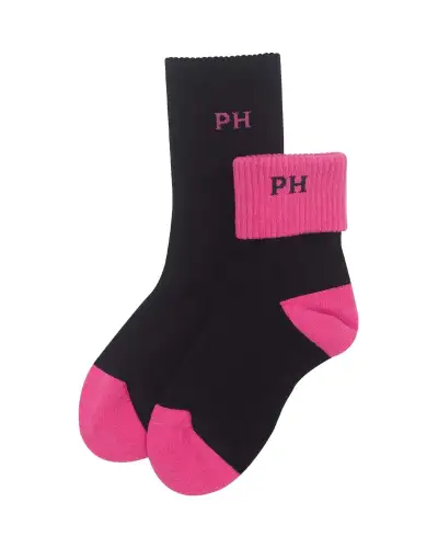 Introducing the women's black Reversible Sport socks. Their ability to fold down and still look perfectly right side up makes these stylish Sport socks so unique. Ideal for those who can't decide between Quarter Crew and Crew, these black and pink socks are the ultimate addition to your athletic wardrobe.