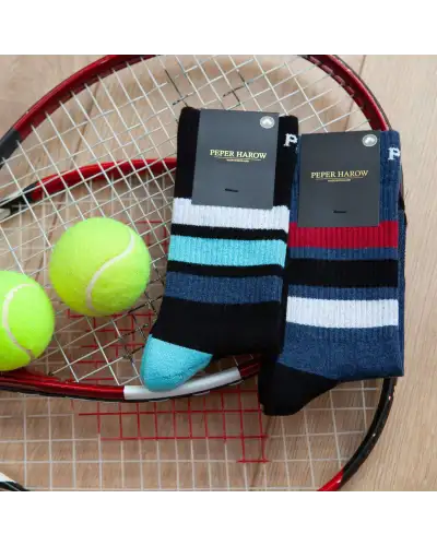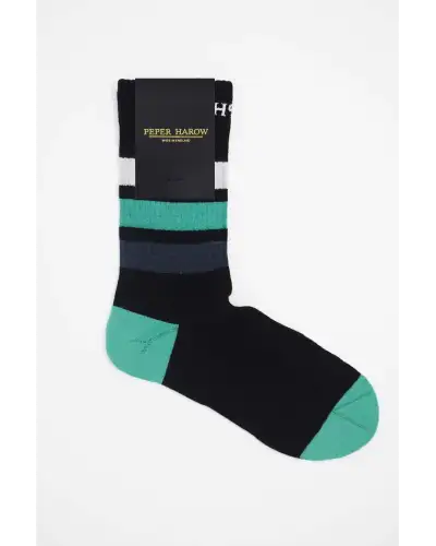 These seamless toe women's luxury sport socks are the epitome of durability and comfort. Featuring a white, turquoise and navy stripe along the ribbed calf.