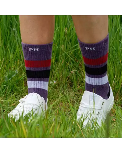 Take fitness to a new level with the mauve Striped organic cotton sport socks for women. With a thick, cushioned sole and ribbed arch bands providing unmatched comfort and support.