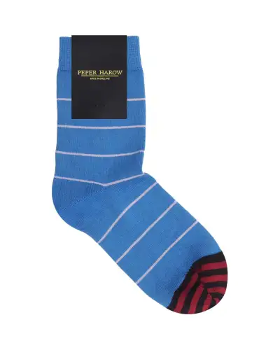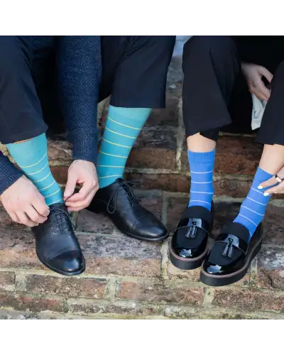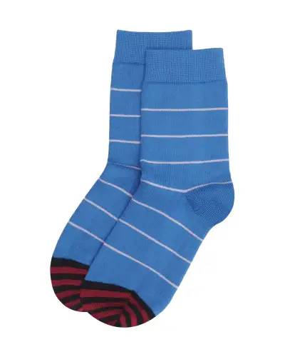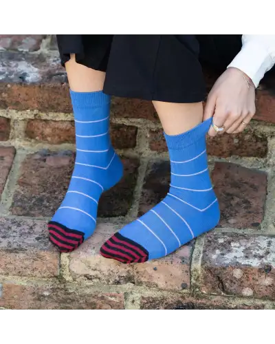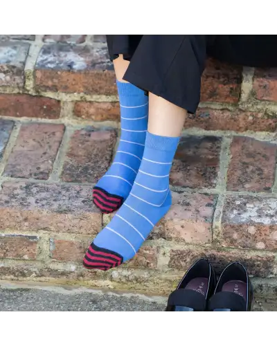 Embrace the elegance and sophistication of the blue Thin Stripe women's luxury socks. Accented with light pink stripes, these chic and refined socks are the perfect way to enhance any outfit. Versatile and stylish, they bring a touch of luxury to your wardrobe for any occasion.
