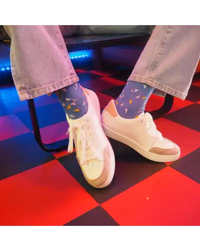 Enhance your everyday style with the Trilateral women's socks - crafted from recycled cotton, these luxurious and quality socks offer fashion-forward style. Coming in a blue hue with grey accenting, their multi-coloured triangle pattern adds a modern and tasteful flair to any outfit.