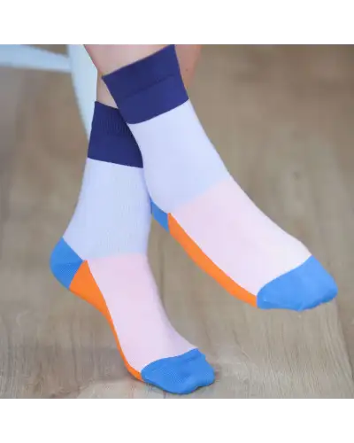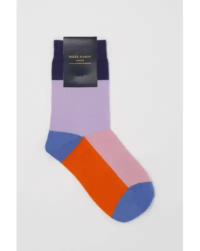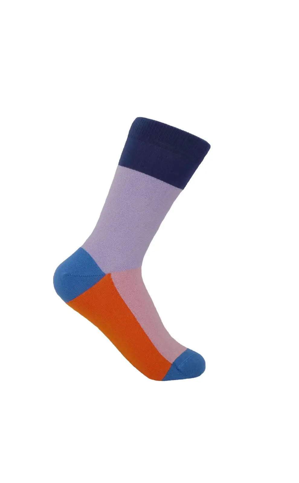 Introducing the colourful lavender Victoria socks for women. With it's contrasting navy, lavender, pink, blue and orange, these ladies socks are an absolutely energetic addition to every woman's outfit or wardrobe.