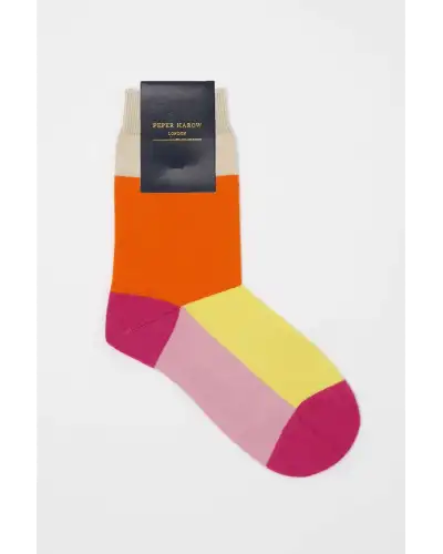 Introducing the colourful orange Victoria socks for women. With it's contrasting taupe, orange, pink, yellow and magenta, these ladies socks are an absolutely expressive addition to every woman's outfit or wardrobe.