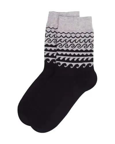 Enhance your chic style with the grey Wave women's luxury socks. Combining comfort and flair, these playful socks are a must-have for the bold and unique woman. Featuring a wavy grey and black design, they add a touch of character to any outfit.
