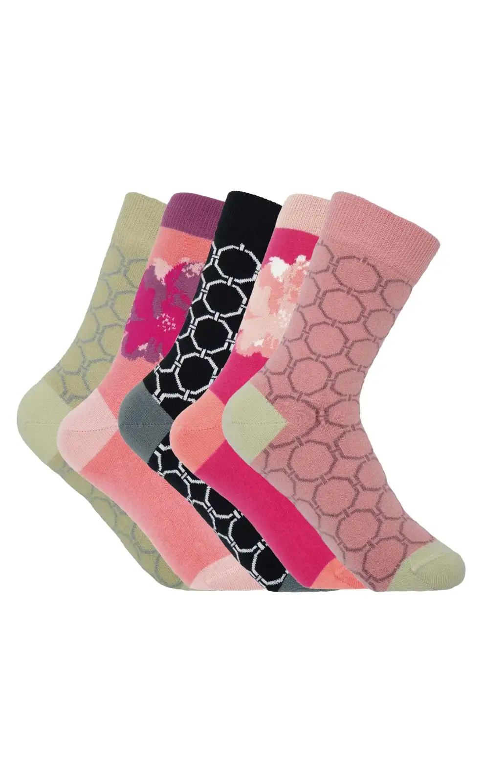 The Beehive & Wild Flower Women's Socks Bundle features a charming collection of five pairs, each adorned with delicate floral patterns and whimsical bee designs. Made from soft, breathable materials, these socks are perfect for adding a touch of nature-inspired style to your everyday wardrobe. Ideal for those who love subtle details and timeless designs, this bundle keeps your feet comfortable and cozy throughout the day.