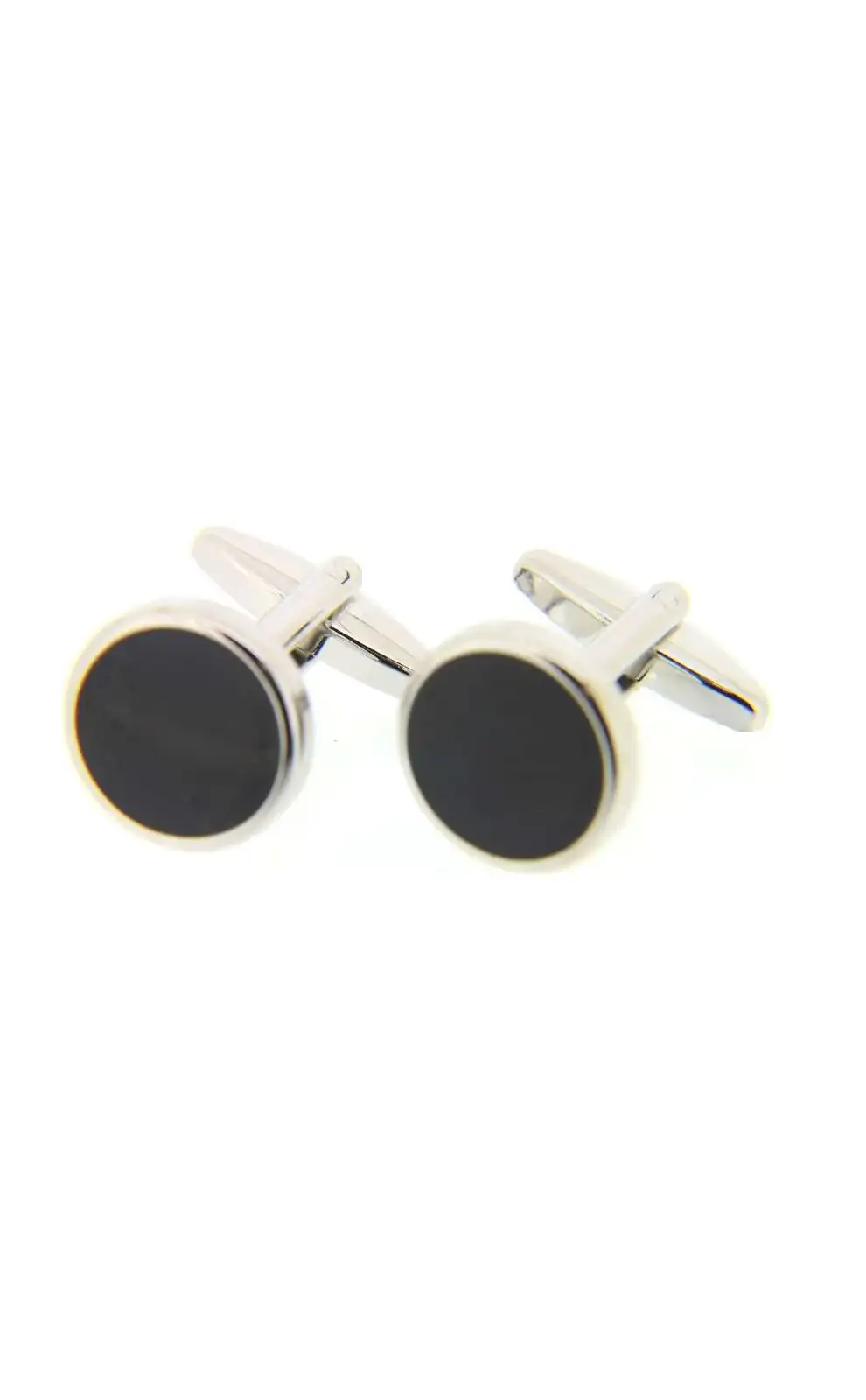 - Round Rhodium With Black Enamel Centre Cufflinks
