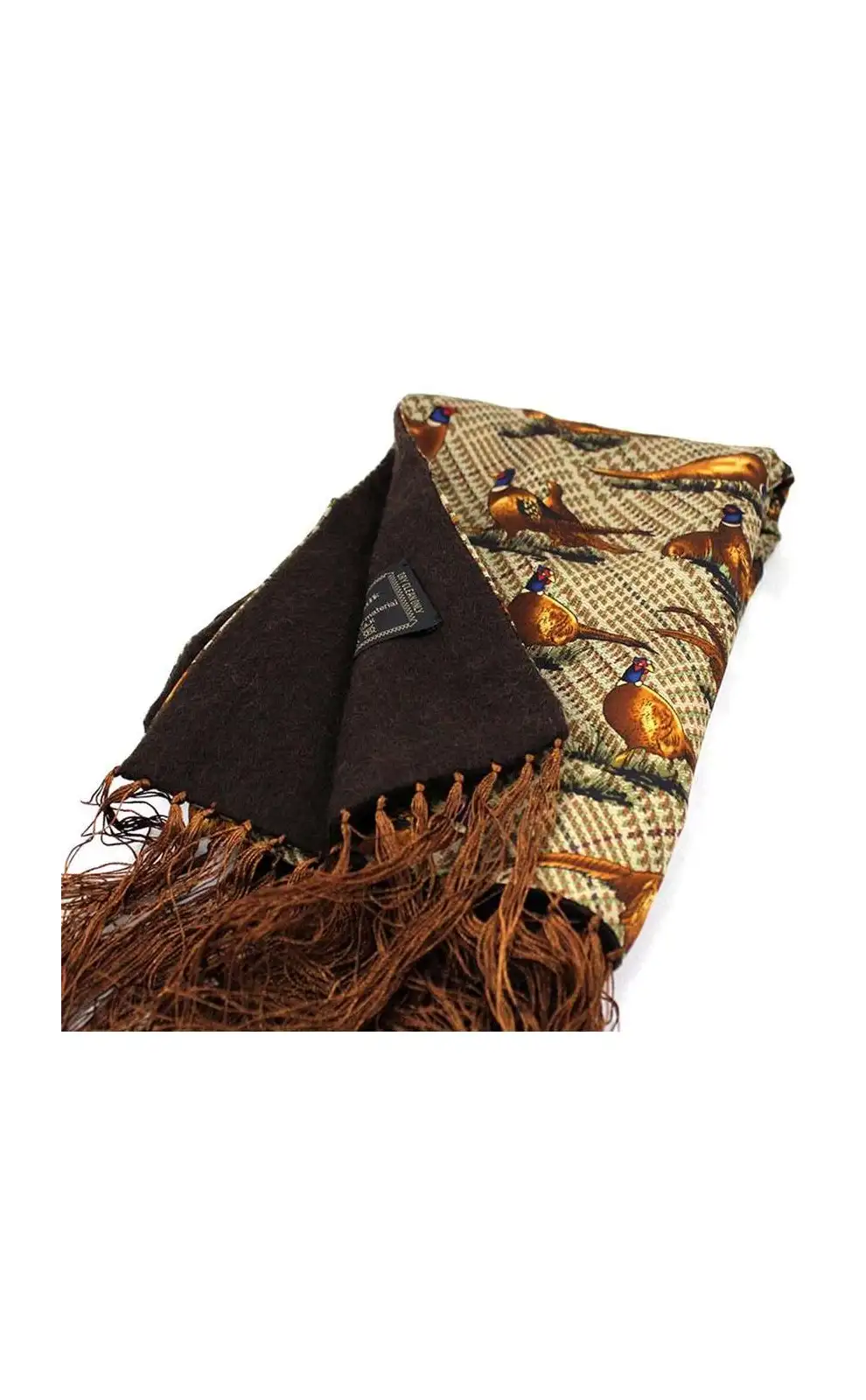 Soprano Lambs Wool And Printed Silk Standing Pheasants On Tweed Ground