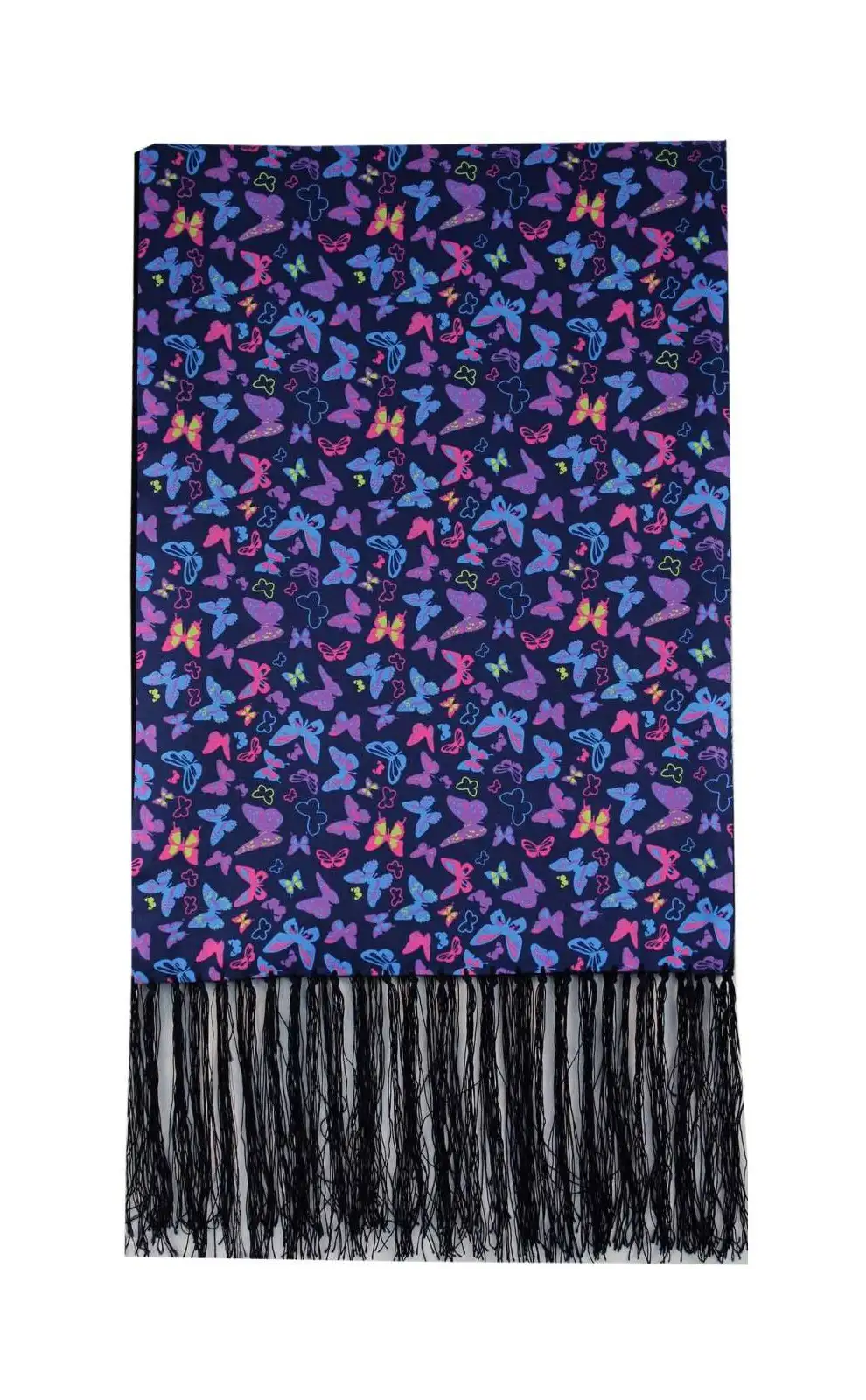 - Soprano Multi Coloured Butterflies On Navy Ground Wool And Silk Mix Luxury Men's Silk Scarf