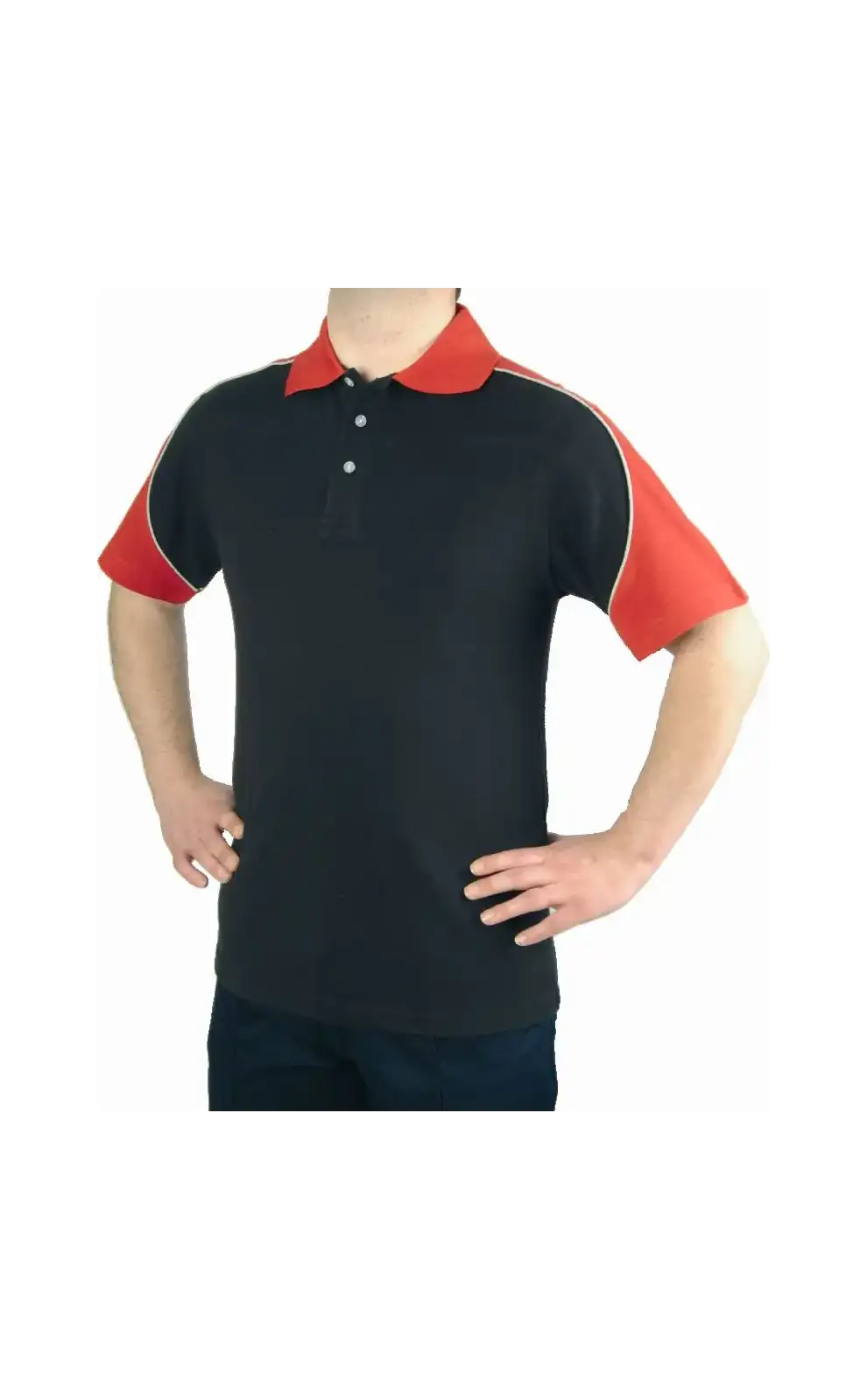 - Striking raglan style with contrast shoulder panel, sleeves and piping