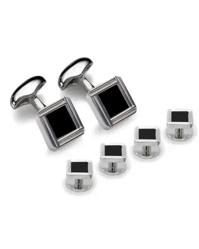 Real Onyx stones are encased in this stylish and timeless tuxedo stud and cufflink set. Inspired by Celtic knots, this timeless design will hold you in good stead for any black tie event for years to come!