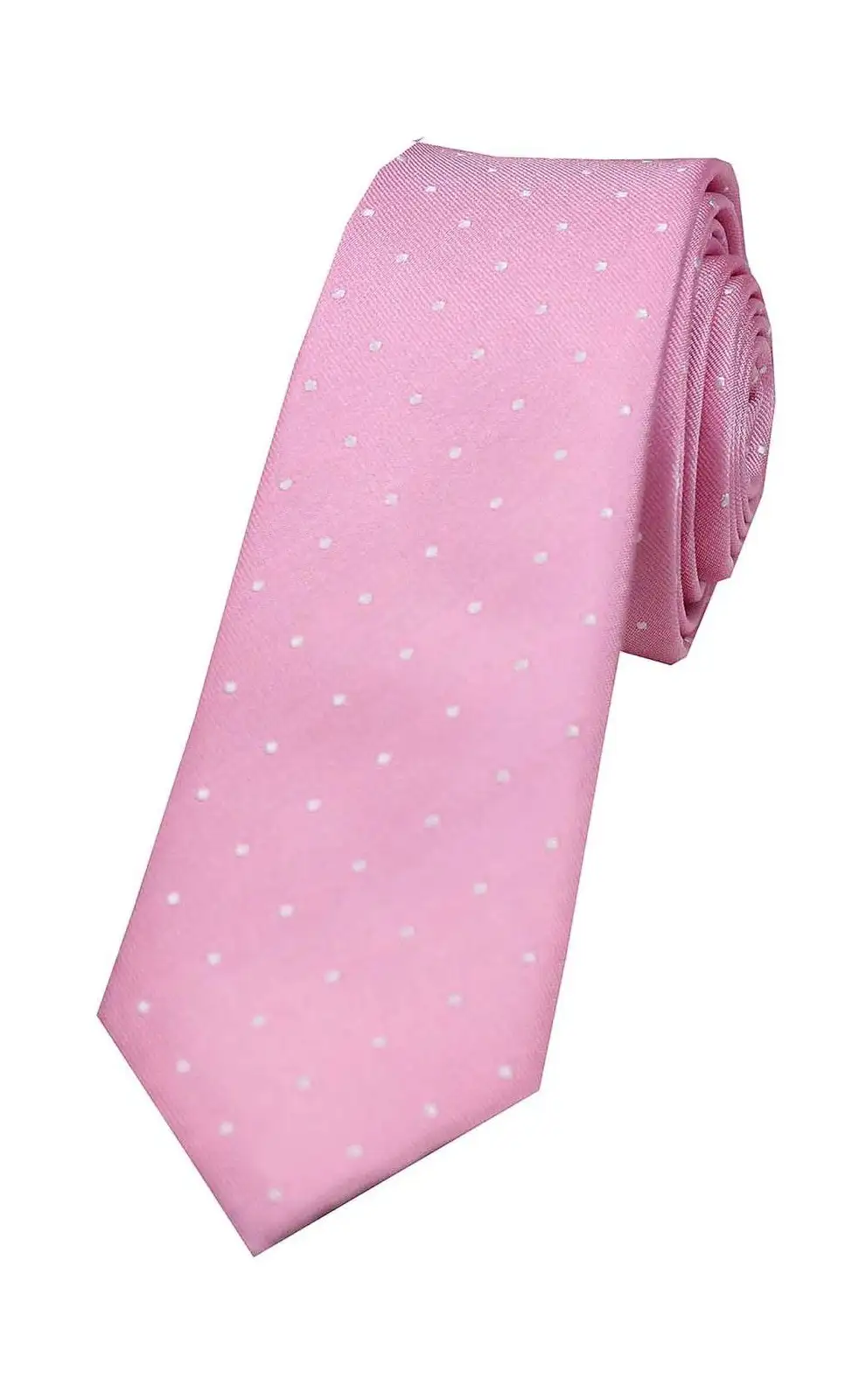 - Soprano Light Pink and White Pin Dot Thin Silk Tie, Finest Quality Slim Silk Ties.