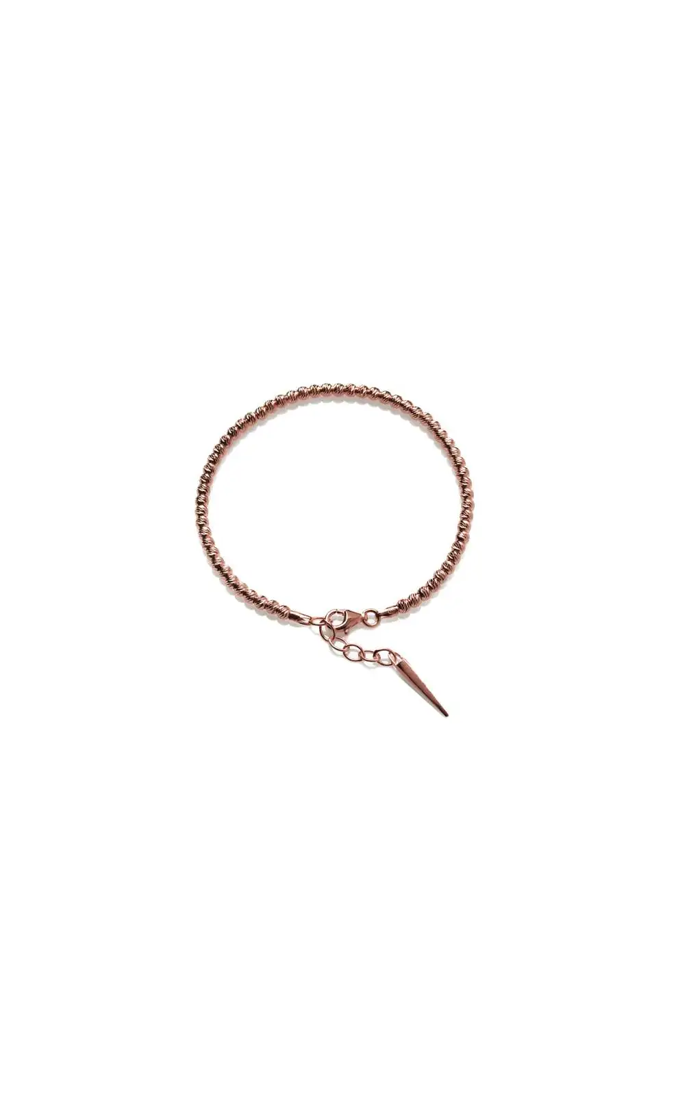 This is the perfect jewel for a woman that loves sparkle! Diamond cut sterling silver beads surround the whole bracelet. An extension chain is attached for a perfect fit and is finished with an edgy arrow head charm. Made from Sterling silver and plated with 18 carat rose gold.