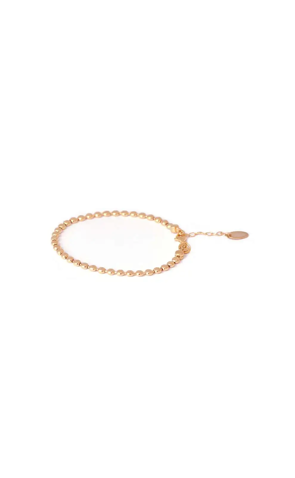18 carat, rose gold plated beads were intricately diamond cut and strung on flexible silver chain to create this fabulous bracelet. There is an extension chain so you can adjust the bracelet to fit perfectly on your wrist. Made from Sterling silver and plated with 18 carat rose gold to add some eye-catching sparkle to your look.